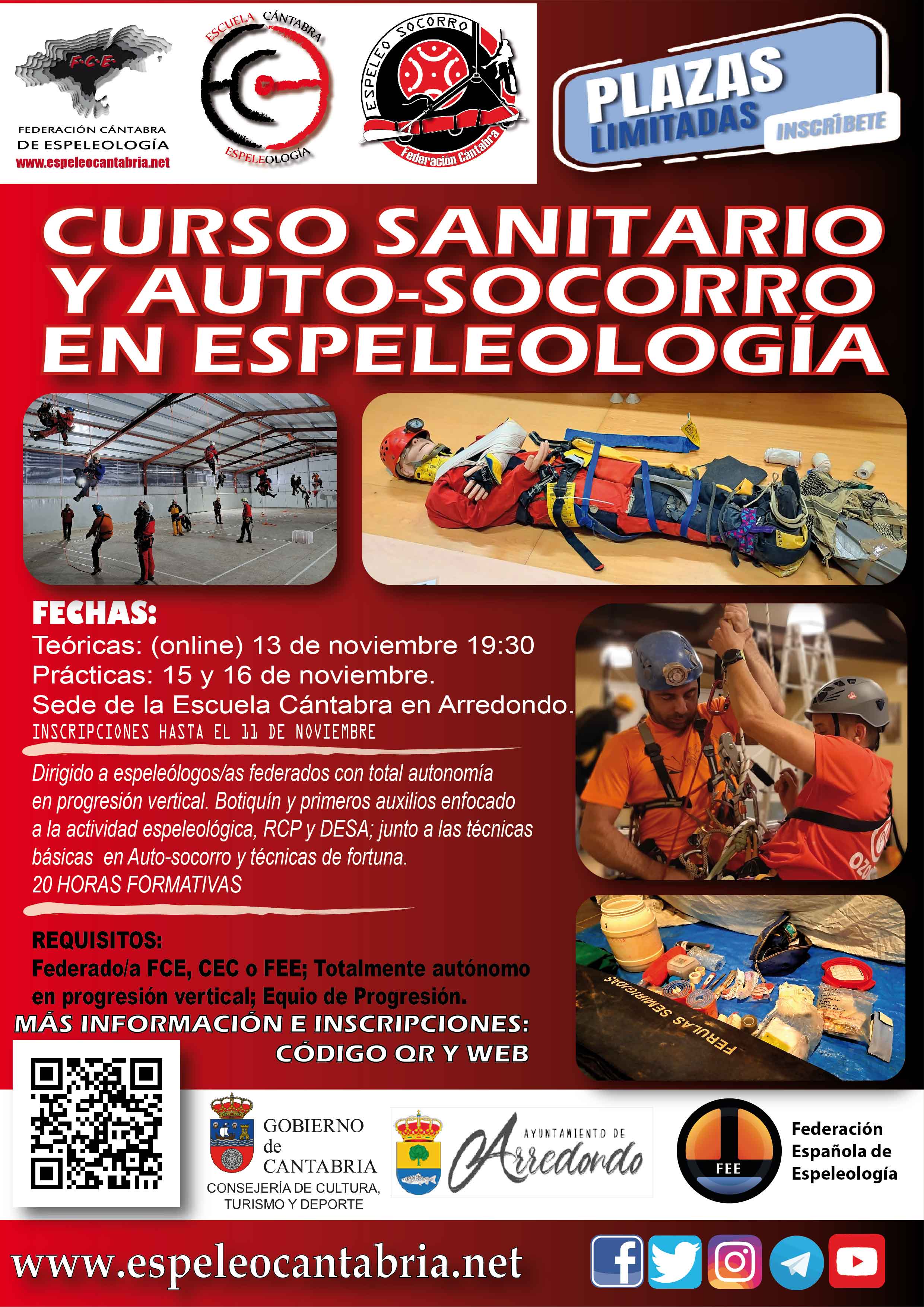 Cartel Sanitario y Auto socorro 2025 01 01 Curso Sanitario y Auto-Socoro en Espeleología Escuela Cántabra de Espeleología Información